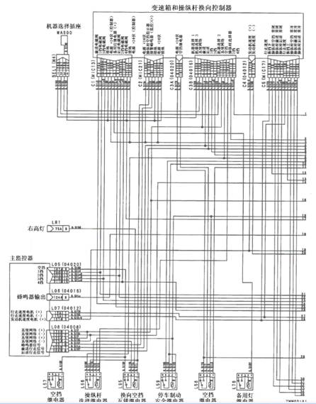 1)變速箱和操縱桿控制器C1(雌)(2)和機(jī)箱接地之間的電阻:5-15Ω 2)變速箱和操縱桿控制器C1(2)和機(jī)箱接地在空擋時(shí)的電壓:小于1伏 |