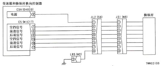 1)方向桿故障 2)組合開關(guān)電源故障 以下線束與電源短路,與機(jī)箱接地短路,觸點(diǎn)有故障或斷開: 3)變速箱和操縱桿控制器C3B(雌)(7)和L04(5)之間線束 4)變速箱和操縱桿控制器C3B(雌)(15)和L04(6)之間線束 5)變速箱和操縱桿控制器C3B(雌)(8)和L04(7)之間線束 6)變速箱和操縱桿控制器C3B(雌)(16)和L04(8)之間線束 7)變速箱和操縱桿控制器故障 |