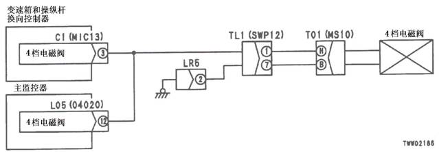 1)4檔電池閥故障 2)變速箱和操縱桿控制器C1(雌)-TL1(4)-T01(E)之間線束與電源短路,與機(jī)箱接地短路,觸點(diǎn)有故障或斷開 3)機(jī)箱-TL1(7)-T01(B)之間線束與機(jī)箱接地短路,觸點(diǎn)有故障或斷開 4)變速箱和操縱桿控制器有故障 | ||||
