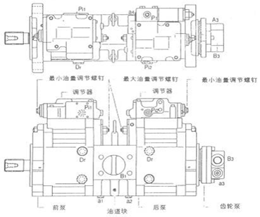 柱塞式串聯(lián)變量雙泵,最大排量1402ml/r,該泵按總功率恒定進(jìn)行變量。