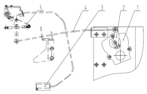 1- 步進電機 2-曲柄總成 3-熄火裝置 4-連桿 5-油門擺桿
