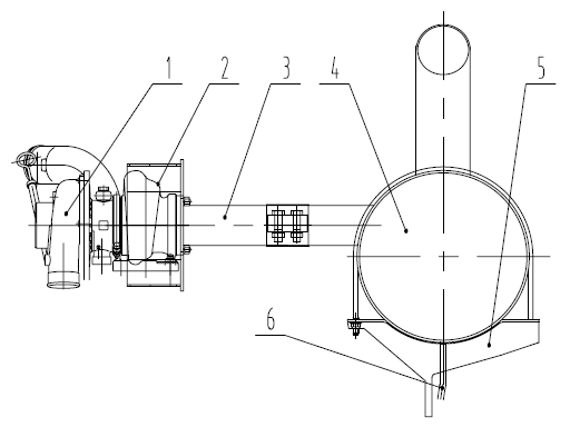 1-渦輪增壓器 2-防燙護罩 3-排氣管 4-消音器 5-支架 6-引水膠管