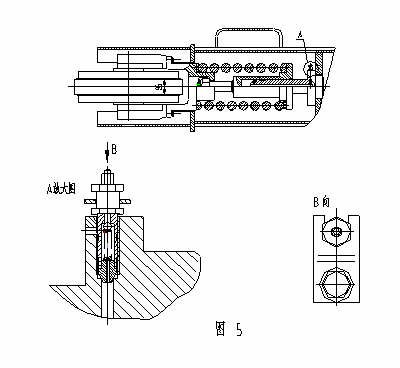 每條履帶都設(shè)有張緊裝置,以調(diào)整履帶的張緊度,減少履帶的振動噪聲、摩擦、磨損及功率損失,見圖3-17。目前單斗液壓挖掘機都采用液壓張緊結(jié)構(gòu)。其液壓缸置于緩沖彈簧內(nèi)部,減小了外形尺寸。