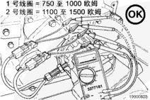 注: 測(cè)量車速傳感器線圈的電阻值時(shí),使用 2 個(gè)陰性測(cè)試導(dǎo)線。這樣就可以輕微地彎曲傳感器的電氣導(dǎo)線,以便檢查絕緣層下面的導(dǎo)線股是否損壞或部分?jǐn)嗔选?/P>