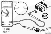如果測(cè)量結(jié)果大于 10 歐姆,回路電源導(dǎo)線中存在開路。維修導(dǎo)線,或更換線束。參考 OEM 故障診斷及排除手冊(cè)。