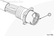終端電阻器蓋 (1) 必須安裝在 OEM 主干線束插頭 (2) 的正確位置,以保持正確的通信。每個(gè)電阻器電阻為 120 歐姆,位于可拆卸的蓋內(nèi)。