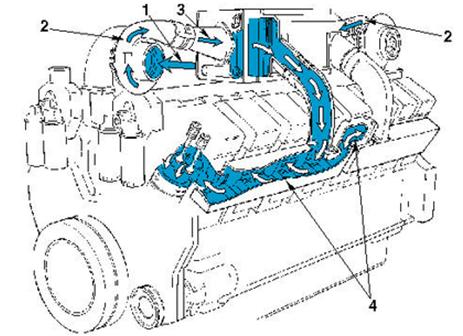 船用發(fā)動(dòng)機(jī)上的渦輪增壓器為水冷式。軸承殼體和渦輪增壓器渦輪殼體為水冷式。