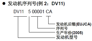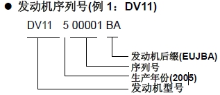 發(fā)動(dòng)機(jī)型號(hào)和序列號(hào)設(shè)置在圖示位置。當(dāng)尋求必要的產(chǎn)品保證和部件訂購(gòu)時(shí),這些數(shù)字是必要的。同時(shí)通過各數(shù)字的位置也指明了發(fā)動(dòng)機(jī)的型號(hào)和系列號(hào)。