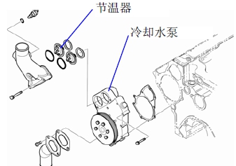 � 取下冷卻水排放管和節(jié)溫器。