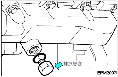 � 拔出機(jī)油冷卻器蓋上的排放螺塞,排出冷卻水。