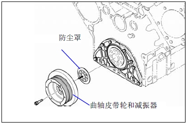 � 與安裝順序相反,卸去曲軸滑輪的固定螺栓,然后卸去曲軸輪和減振器。