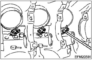 � 按氣缸號碼的順序排列活塞總成并在連桿和軸承蓋上安裝軸承。但是,小心不要互換連桿和軸承蓋的軸承。