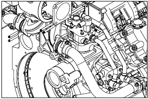 � 為排氣彎管安裝襯墊并安裝渦輪增壓器,旋緊螺栓。