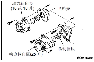 � 將動力轉(zhuǎn)向泵組裝到飛輪殼上。
