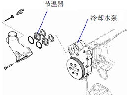 � 將 O 型環(huán)安裝到節(jié)溫器上,然后緊固固定螺栓組裝冷卻水管。