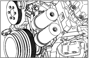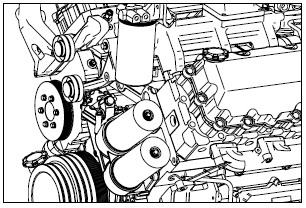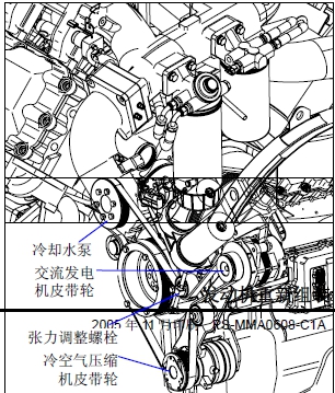 � 進(jìn)行連接時,將皮帶安裝到曲軸皮帶輪、交流發(fā)電機皮帶輪、冷卻水泵和冷空氣壓縮機皮帶輪上。