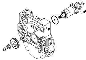 � 在機油泵表面要安裝壓力調(diào)節(jié)閥的位置上安裝墊圈,并將壓力調(diào)節(jié)閥置于其上。