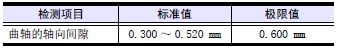 超過標準值時,檢測推力片和曲軸。標準值以內(nèi)時,在最后端的主軸承端蓋螺栓旋松的狀態(tài)前后移動曲軸,再次檢測。