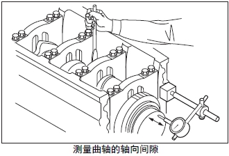 (3) 用撬棒撥動曲軸,測量曲軸前后移動的最大差值,