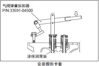 (5) 在氣閥導(dǎo)管上安裝彈簧座、氣閥彈簧和轉(zhuǎn)動端蓋,用氣閥彈簧拆卸器安裝氣閥的鍥形卡套。