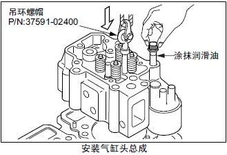 (2) 在雙頭螺栓上安裝吊環(huán)螺帽,將氣缸頭總成吊起。