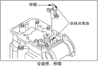 (3) 橋帽涂抹潤滑油,安裝在橋上。注意橋帽不要從頂桿孔落入曲軸箱內(nèi)。