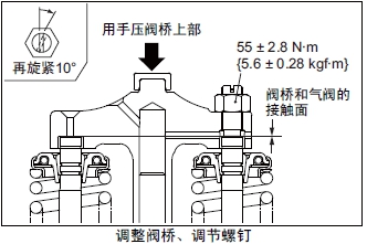 (2) 用手按壓橋上部,使調(diào)節(jié)螺釘和相對側(cè)的閥桿上端面和閥橋的端面接觸。