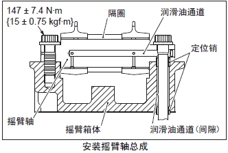 (2) 搖臂軸的銷孔和定位銷對準(zhǔn)后,將搖臂總成安裝在搖臂箱體上。