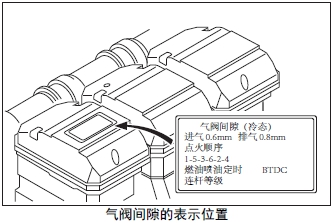 (b) 氣閥間隙的標(biāo)準(zhǔn)值指示在No.1 氣缸的搖臂罩的銘牌上。