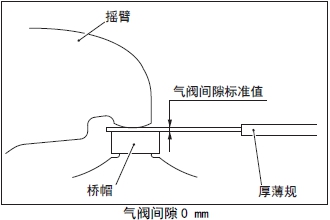 (2) 在搖臂和橋帽之間插入和氣閥間隙標(biāo)準(zhǔn)值相同厚度的厚薄規(guī)。( 氣閥間隙0 mm)