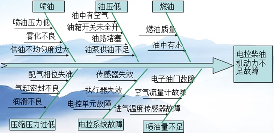 現(xiàn)象:發(fā)動機動力不足,運轉不均勻并排出黑煙,加速時出現(xiàn)敲擊聲。