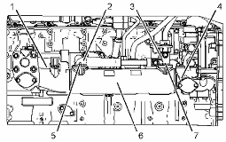 卸下發(fā)動(dòng)機(jī)機(jī)油冷卻器芯 (6) 。從冷卻器進(jìn)口彎頭 (2) 和歧管 (3) 上卸下 O 形密封圈。