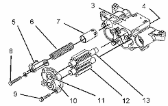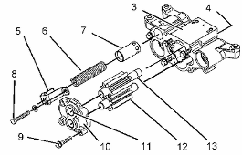 使用清潔的發(fā)動機(jī)機(jī)油潤滑惰齒輪和驅(qū)動齒輪。 使用清潔的發(fā)動機(jī)機(jī)油潤滑套筒軸承 (4) 。 將惰齒輪 (12) 和驅(qū)動齒輪 (13) 安裝到泵體 (3) 中。