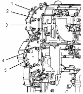 將適當?shù)钠鸬踉O備連接在前殼體 (10) 上。 前殼體 (10) 的重量約為 57 kg (125 lb)。 將前殼體 (10) 安裝在缸體的定位銷上。