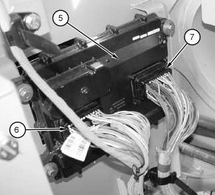 卡特彼勒365C和385C挖掘機機器 ECM 的位置 (5) 機器 ECM (6) J1 接頭 (7) J2 接頭 |