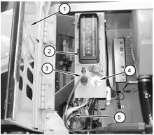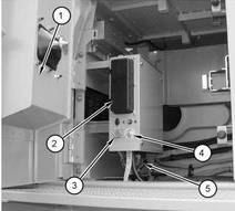 卡特彼勒365C和385C挖掘機機器 ECM (5) 位于駕駛室(前檢修門) (1) 后面的腔室內(nèi)。