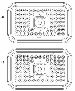 卡特彼勒365C和385C挖掘機與 ECM 配對的機器線束接頭 J1 and J2。