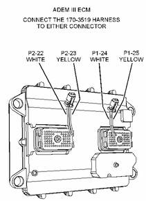 注: 請(qǐng)參閱圖 1 或圖 2。 170-3519 線束可以連接到 P1 接頭或 P2 接頭上。 選擇最容易靠近的接頭。