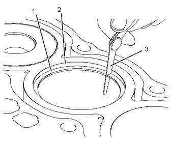 (1)活塞環(huán) (2)氣缸環(huán)形臺(tái)階 (3)塞尺 |