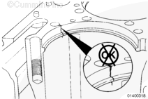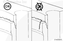 不必機(jī)加工缸體以去除可接受的裂紋。如果在初始檢查中發(fā)現(xiàn)不可接受的裂紋,則必須機(jī)加工沉孔臺(tái)階。與 Cummins® 特約維修站聯(lián)系。