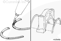 每道密封膠寬度必須在 3 至 5 mm [0.12 至 0.20 in] 之間,并且不得進(jìn)入到主軸瓦內(nèi)徑中。主軸承中的密封膠可能損壞發(fā)動(dòng)機(jī)。 |