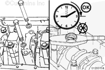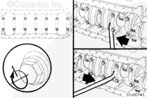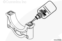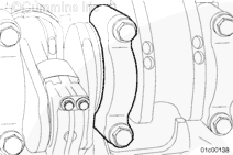 主軸承蓋的連接配合面只能使用 Loctite™ 518 螺紋密封膠。其它密封膠可能變硬、變脆,從而使機(jī)和碎屑進(jìn)入到主軸承/缸體接合處,從而造成發(fā)動(dòng)機(jī)損壞。 |