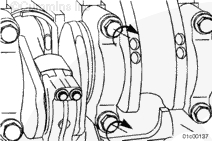 確保斜面朝向曲軸軸頸。止推軸承安裝錯(cuò)誤將導(dǎo)致發(fā)動(dòng)機(jī)損壞。 |