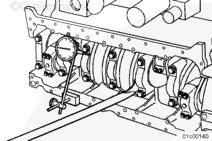 如果曲軸軸向間隙大于 0.50 mm [0.020 in],必須拆下發(fā)動(dòng)機(jī)才能更換曲軸。參考第 0 節(jié)中的步驟 000-001(發(fā)動(dòng)機(jī)拆卸)。