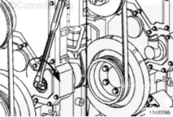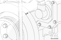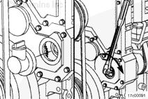 使用壓縮機驅(qū)動裝置或盤車裝置沿順時針旋轉(zhuǎn)方向(從發(fā)動機前方看)盤動發(fā)動機。將減振器上的 A 標記與齒輪室蓋上的指示箭頭對齊。