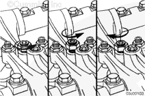 使用度盤式扭矩扳手(量程 0 到 150 in-lb)擰緊噴油器搖臂調(diào)節(jié)螺釘。如果調(diào)整過程中螺釘發(fā)出咔噠聲,則需要維修螺釘和搖臂。