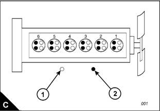 necessary. Check the tappet clearances for the exhaust valves (C2) on cylinders 2, 4 and 6, and adjust the
