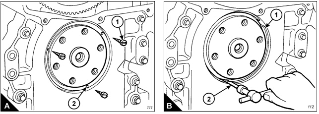 l Ensure that the seal is fitted with the part number and the crankshaft rotation arrows toward the outside.