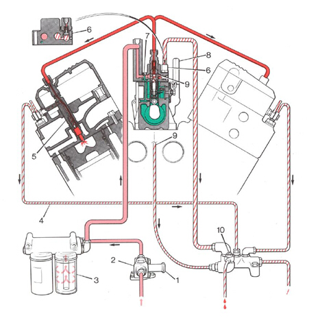 surplus fuel to return to the fuel tank. Fuel enters the