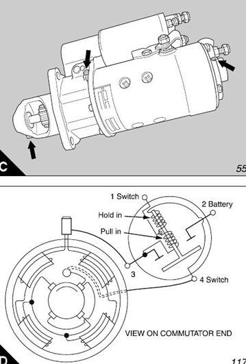 the starter motor and tighten them to 34,0 to 39,5 Nm